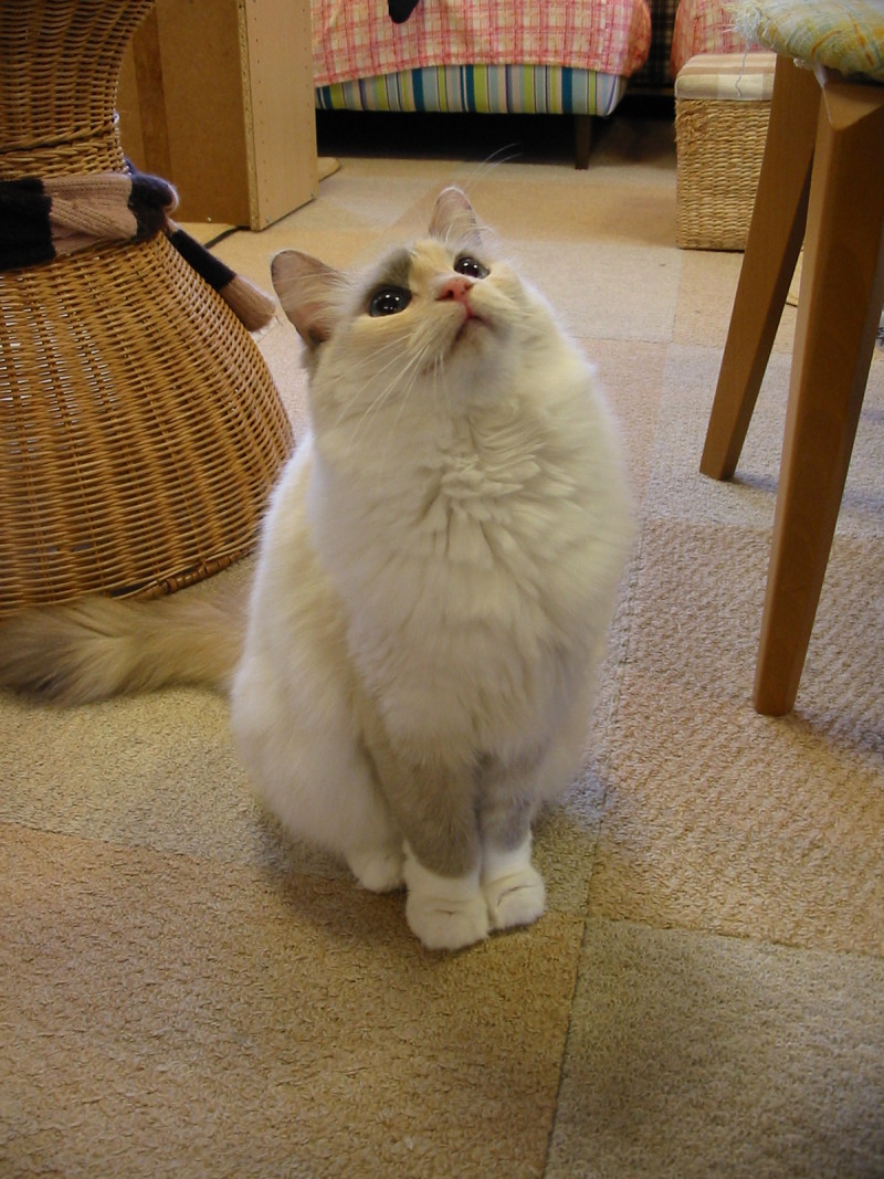 ふわふわの毛と、ブルーのきらきら瞳がきれいな猫。