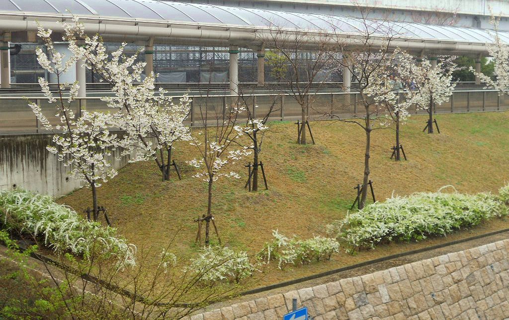 木は小さめだけど9分咲きくらいの桜と、雪柳。