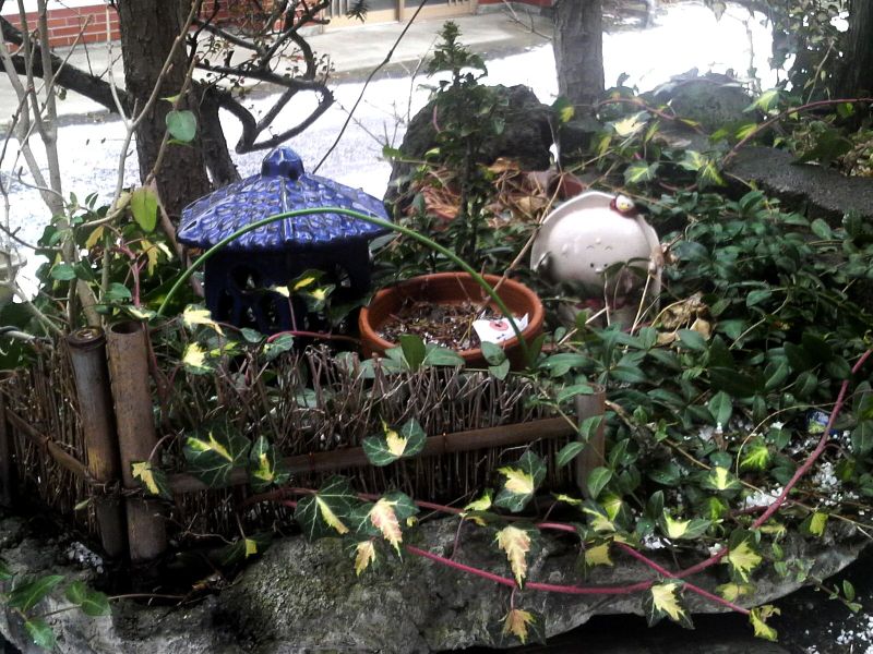 私が子供の時にもらったお地蔵様貯金箱を活用して、ミニチュア田舎のお庭風?