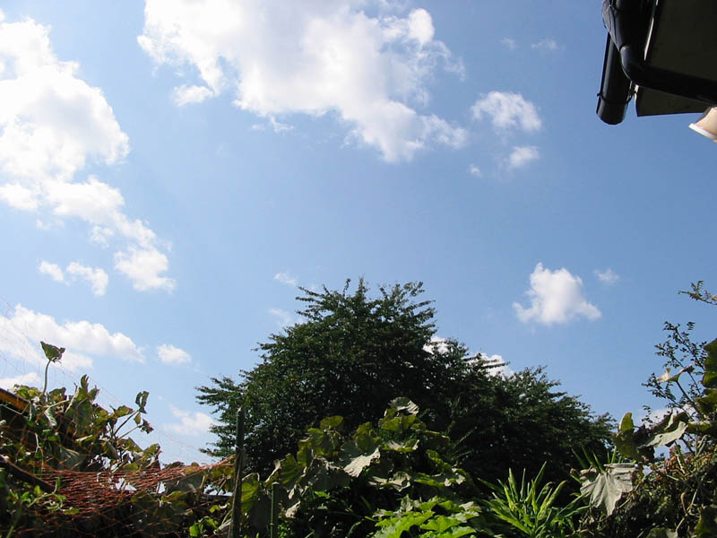 去年と同じく、祖父母の家の庭越しに。