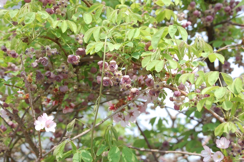 私の生家、現在父の趣味の庭に生えているあけびの花。