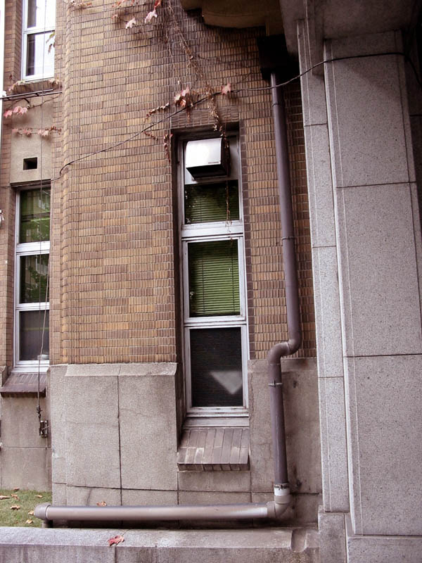 別の窓の側には常緑樹。こちらは夏のような情景でした。