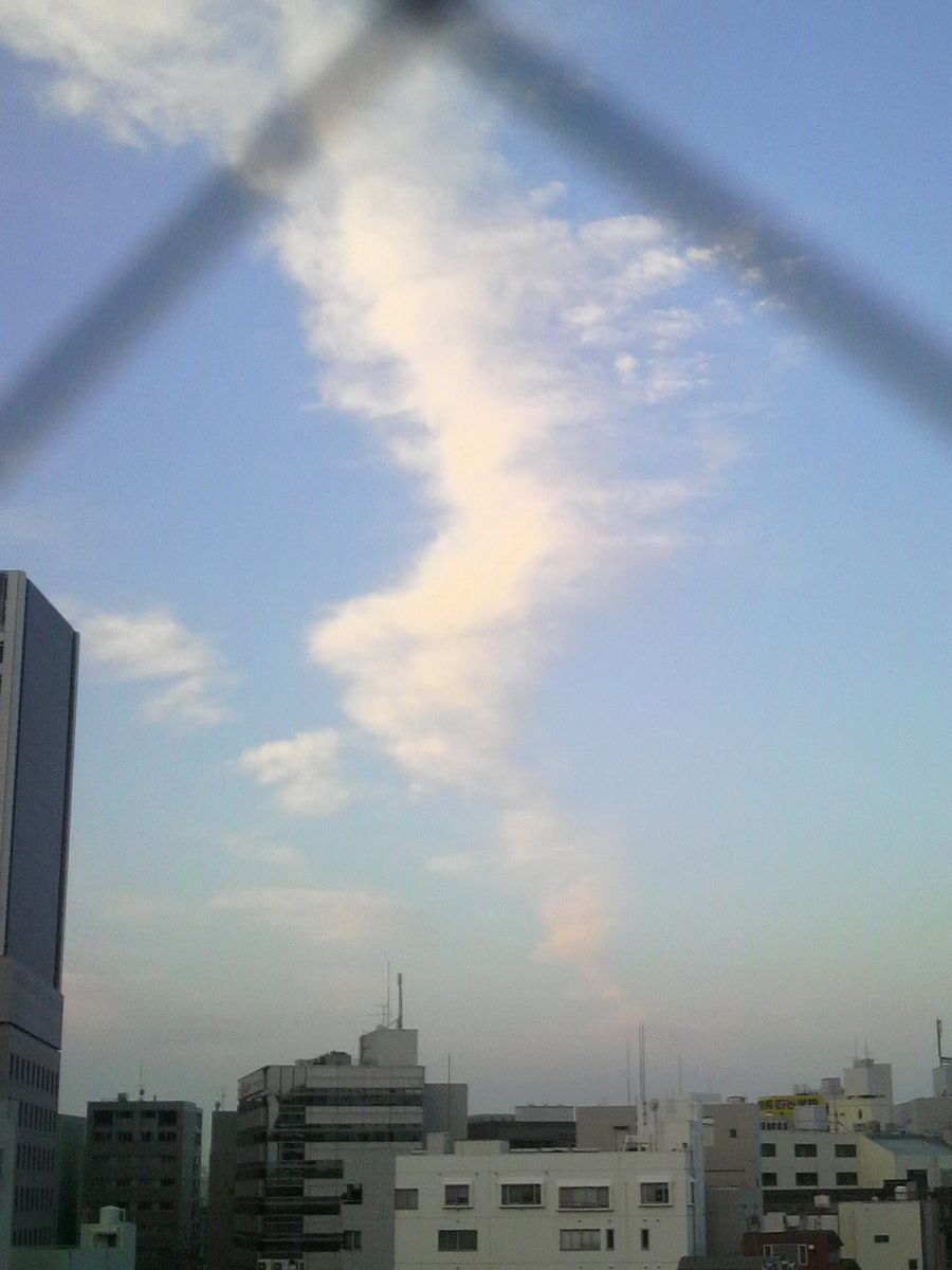 出張先のホテルで、朝カーテンを開けて見えた雲。