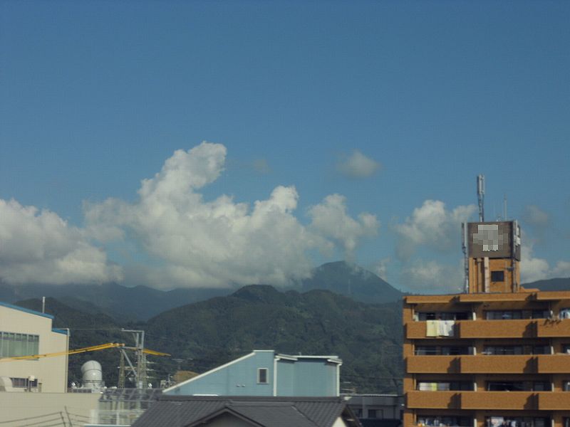 この手前で、山肌の緑とひつじ雲がきれいだったけれど、カメラをごそごそしているうちに街中に入ってしまいました。